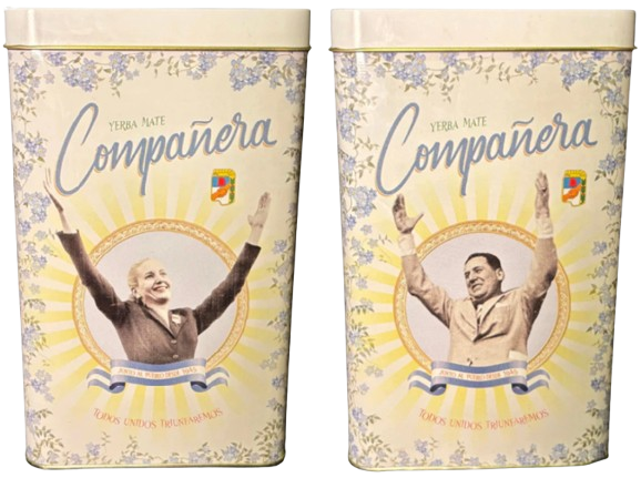 Reviví la mística del movimiento justicialista con la Yerba Mate Compañera Edición Limitada Eva Perón y Juan Domingo Perón. Una lata coleccionable con diseño único: al frente, la imagen inmortal de Evita, símbolo de lucha y esperanza, y al dorso Perón, líder de la justicia social argentina.