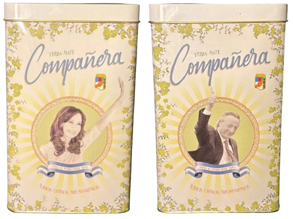 La Yerba Mate Compañera Néstor y Cristina Kirchner llega en una presentación de colección única: al frente, Cristina Fernández de Kirchner, referente de una generación comprometida, y al dorso Néstor Kirchner, el presidente que marcó un renacimiento político en la Argentina.